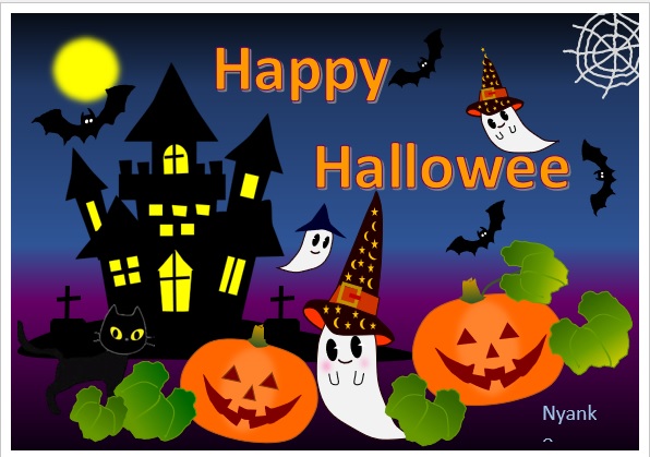 | 2018年10月5日の作品 メールで送られてきました(^^)/ にゃんこさんの“ハロウィーン” (使用ソフト:ワード) |