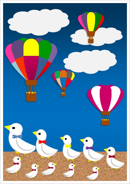 2018年10月12日の作品 せっちゃんの“気球とあひる” (使用ソフト:ワード) |