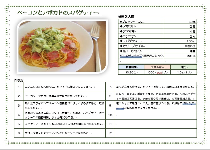 | 2018年10月3日の作品 あっこちゃんの“メニュー” (使用ソフト:ワード) |