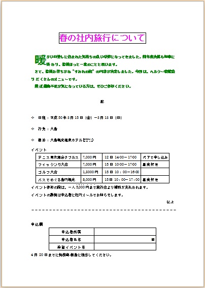 | 2018年4月18日の作品 あっこちゃんの“社内旅行” (使用ソフト:ワード) |