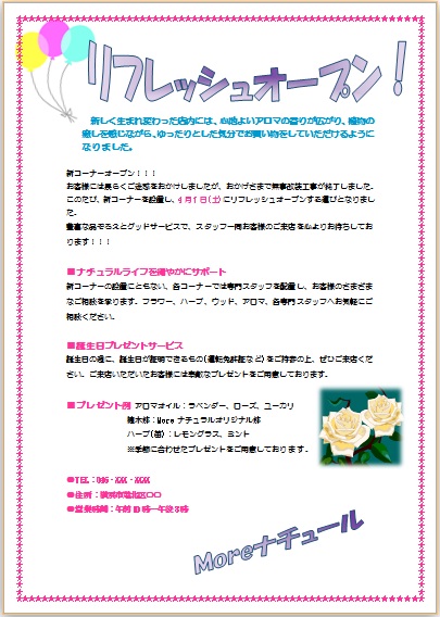| 2018年4月6日の作品 せっちゃんの“三つ折りパンフレット” (使用ソフト:ワード) |