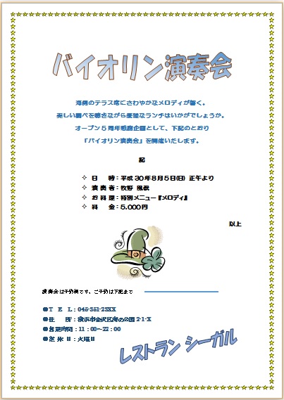 2018年3月28日の作品 ももちゃんの“バイオリン演奏会” (使用ソフト:ワード) |