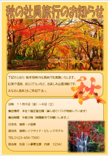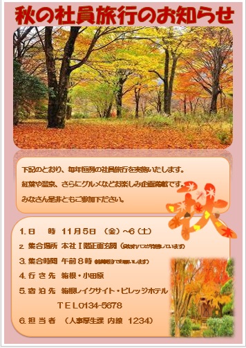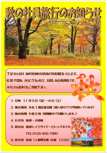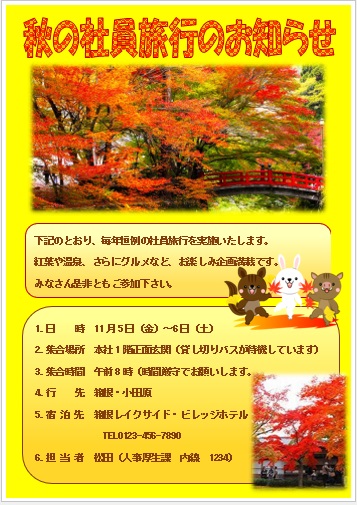 12月18日の作品 さ〜ちゃんの“秋の社員旅行” (使用ソフト:ワード) |
