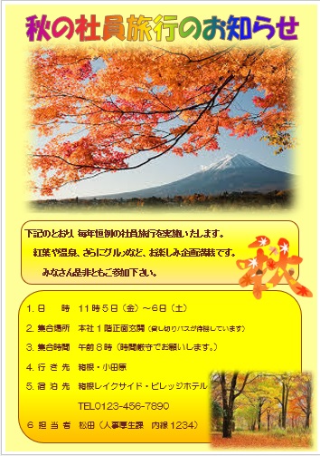| 12月20日の作品 みさちゃんの“秋の社員旅行” (使用ソフト:ワード) |