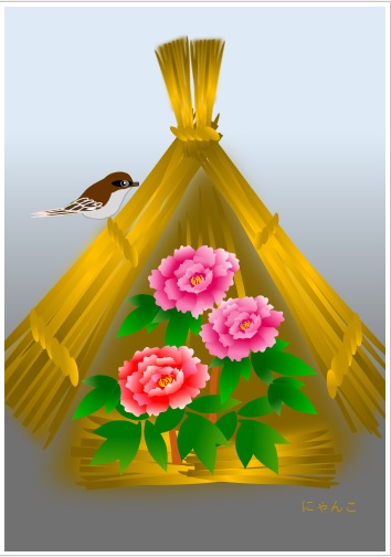 12月6日の作品 にゃんこさんの“寒牡丹” (使用ソフト:ワード) |