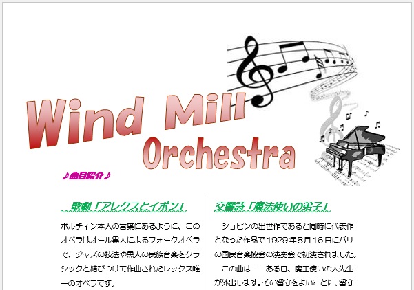 | 12月11日の作品 さ〜ちゃんの“オーケストラ” (使用ソフト:ワード) |