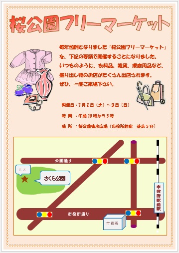 9月13日の作品 みさちゃんの“フリ-マ-ケット” (使用ソフト:ワード) |