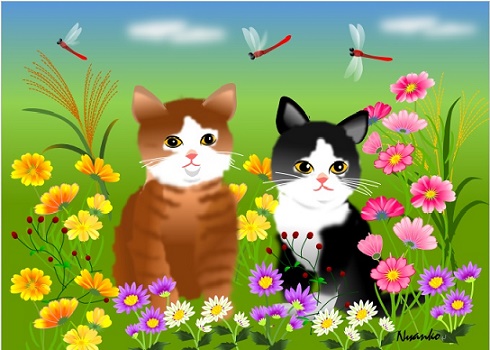 9月24日の作品 にゃんこさんの“猫とコスモス” メールで届きました(使用ソフト:ワード) |