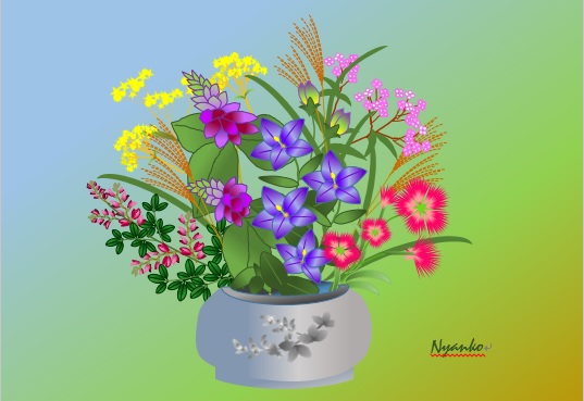 | 9月24日の作品 にゃんこさんの“秋の七草” メールで届きました(使用ソフト:ワード) |