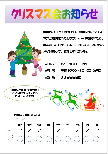 | 10月9日の作品 ひでちゃんの“クリスマス会” (使用ソフト:ワード) |
