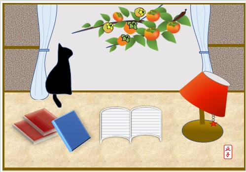 | 10月21日の作品 まさこさんの“柿と読書” (使用ソフト:ワード) |