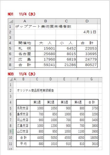 11月4〜6日の作品 ローランさんの“エクセルの学習” (使用ソフト:エクセル・ワード) |