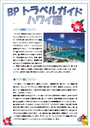 | 11月11日の作品 さ〜ちゃんの“ハワイの旅-1” (使用ソフト:ワード) |