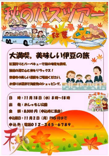 | 11月18日の作品 ひでちゃんの“バスツアー” (使用ソフト:ワード) |