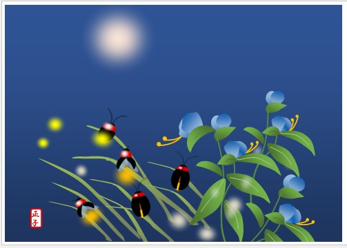 | 2020年5月27日(水)の作品 まこさんの“つゆ草と蛍” (使用ソフト:ワード) メールで届きました(^^)/ |