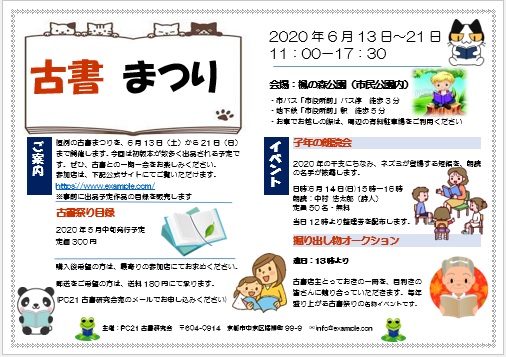 | 2020年7月10日の作品 まこさんの“古書まつり” (使用ソフト:ワード) メールで送られてきました(^^)/ |