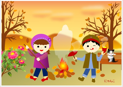 | 10月25日の作品 にゃんこさんの“たき火” (使用ソフト:ワード) メールで届きました |