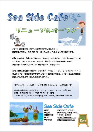 | 11月17日の作品 かんちゃんの“シーサイドカフェ” (使用ソフト:ワード) |