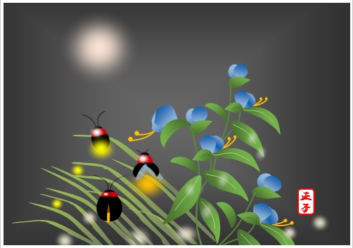 | 2021年5月18日の作品 まこさんの“露草と蛍” (使用ソフト:ワード)メールで送られてきました |