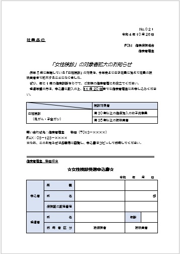 | 2022年10月26日の作品 はたこさんの“女性検診” 使用ソフト:ワード 表の作成、段落罫線、セルの結合、均等割り付け等の学習 |