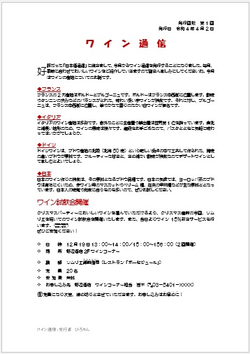 2022年10月26日の作品 なかちゃんの“ワイン通信” 使用ソフト:ワード ドロップキャップ、組文字、囲い文字、割り注、傍点、フッターヘッダー |