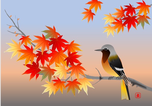 | 2022年10月12日の作品 にゃんこさんの“紅葉と野鳥” 使用ソフト:ワード 自主勉強です 10/12に、メールで届きました。 |
