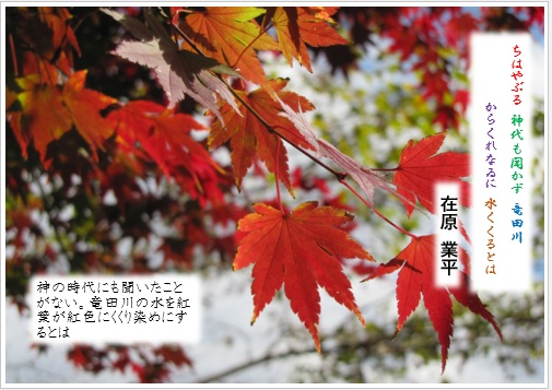 2022年10月17日の作品 チュー太さんの“秋の百人一首” 使用ソフト:ワード 自主勉強です 10/17に、メールで届きました。 |