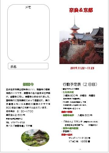 | 2022年12月21日の作品 ローランさんの“奈良&京都の旅-1” 使用ソフト:ワード (この面は1.6,3,4ページです) A4の裏表を利用してA6サイズ8ページ分の小冊子を作りました |