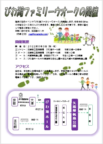| 2022年2月18日の作品 のみちゃんの“びわ湖ウォーク” (使用ソフト:ワード) 線路の作図,図形の余白ゼロ,行間隔,光彩等の学習 |