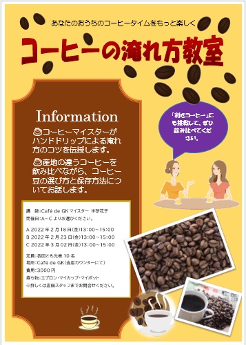 2022年2月18日の作品 さ~ちゃんの“コーヒー” (使用ソフト:ワード) 図形に入力,図形の余白ゼロ,多重線,行間/固定値22等の学習 |