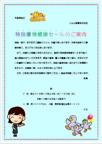 | 2022年2月9日の作品 チュー太さんの“優待セール” (使用ソフト:ワード) 上付文字,傍点,間隔/固定値 ,ページ罫線のオプション等。 |