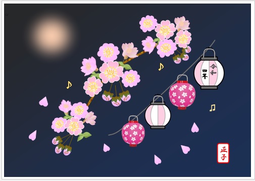 | 2022年3月26日の作品 まこさんの“夜桜祭り” (使用ソフトワード) 自宅での自主学習です。 メールで届きました |