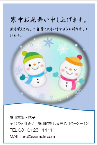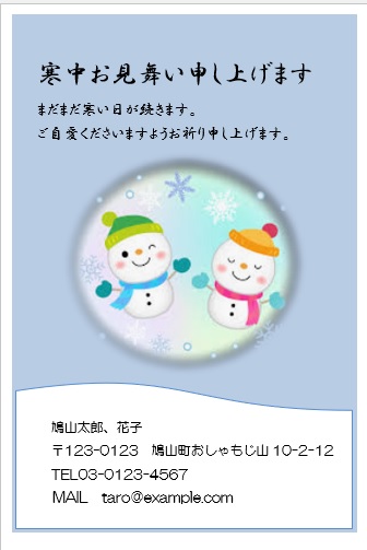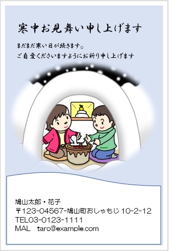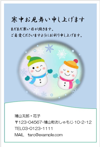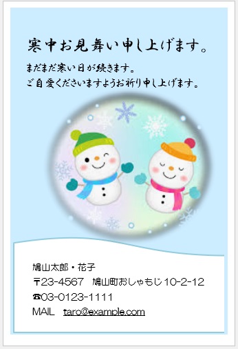 2022年4月20日の作品 めるちゃんの“寒中見舞い” (使用ソフトワード) 図形を回転/文字は回転させない・ぼかし・図のスタイル等の学習 |