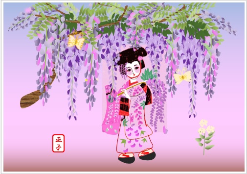 2022年4月23日の作品 まこさんの“藤娘” (使用ソフトワード) 自宅での自主学習です。メールで届きました。 |