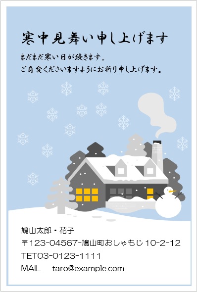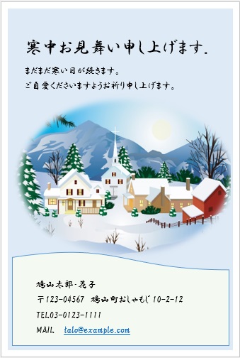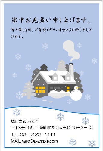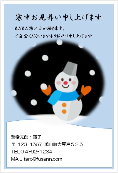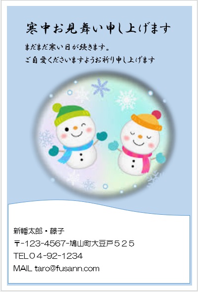 2022年4月27日の作品 なかちゃんの“寒中見舞い-2” (使用ソフトワード) 図形を回転/文字は回転させない・ぼかし・図のスタイル等の学習 |