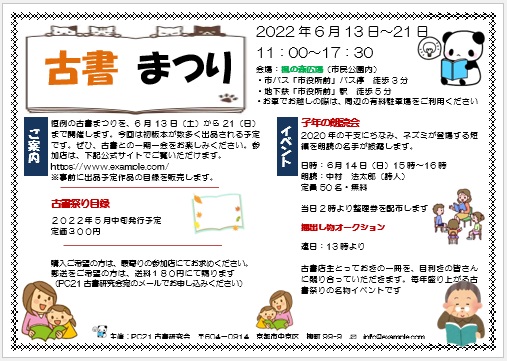 | 2022年4月8日の作品 のみちゃんの“古書だより” (使用ソフトワード) 罫線の非表示・セルの結合/分割・背景の透過・行間/固定値の学習 |