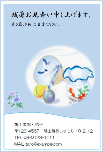 2022年4月27日の作品 なかちゃんの“暑中見舞い-2” (使用ソフトワード) 図形を回転/文字は回転させない・ぼかし・図のスタイル等の学習 |