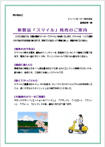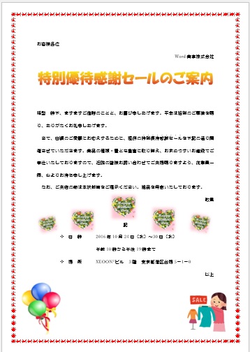 | 2022年4月6日の作品 しんちゃんの“優待セール” (使用ソフトワード) 文字の塗りつぶし・文字間隔・上付文字・傍点・文字の効果・行間等の学習 |