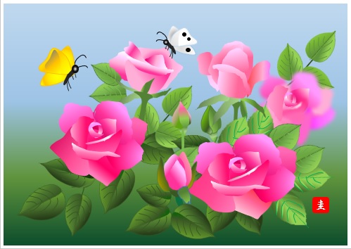 2022年5月27日の作品 にゃんこさんの“バラ” (使用ソフトワード) 自宅での自主学習です。 メールで届きました |