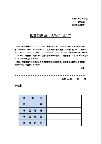| 2022年5月20日の作品 さとちゃんの“教室利用申込書” (使用ソフト:ワード) |