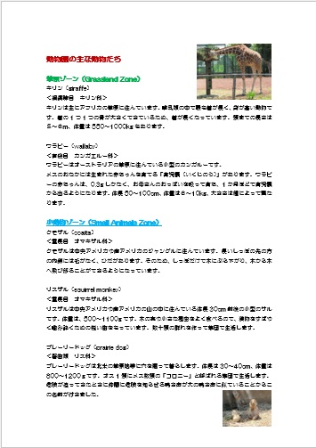 2022年5月11日の作品 チュー太さんの“動物園-表紙” (使用ソフト:ワード) 5/12メールで届きました |