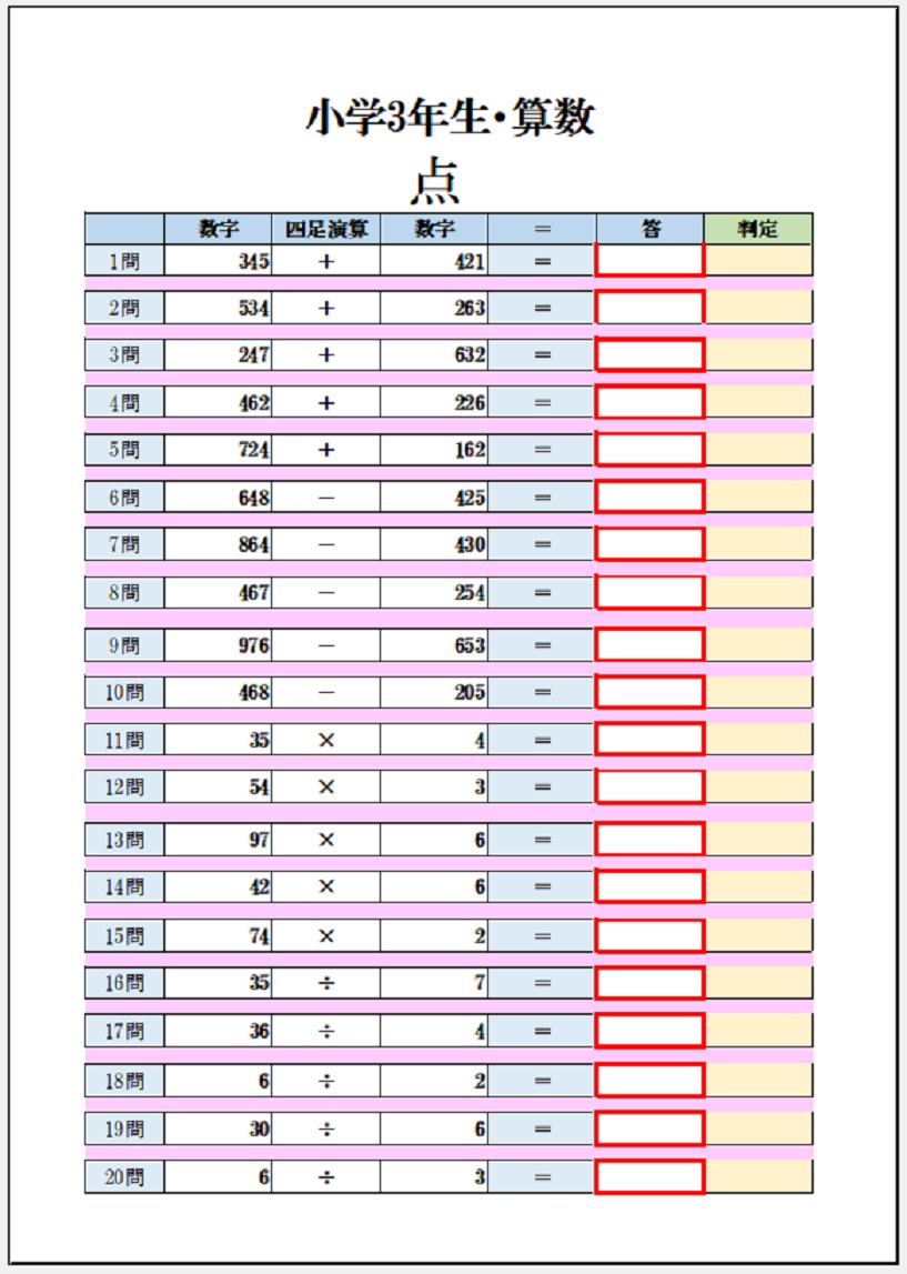2022年6月15日の作品 チュー太さんの“パソコンで算数” (使用ソフト:エクセル)メールで届きました。 自宅での自主学習:算数の練習問題作り。 |