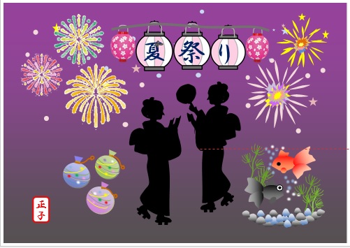 2022年7月23日の作品 まこさんの“夏祭り” (使用ソフト:ワード) 自宅での自主学習です。メールで届きました。 |