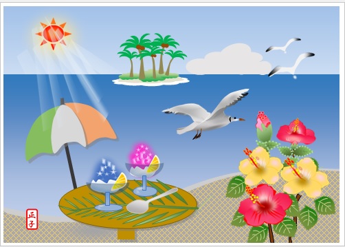 | 2022年7月25日の作品 まこさんの“暑中見舞い” (使用ソフト:ワード) 自宅での自主学習です。7/25にメールで届きました。 |
