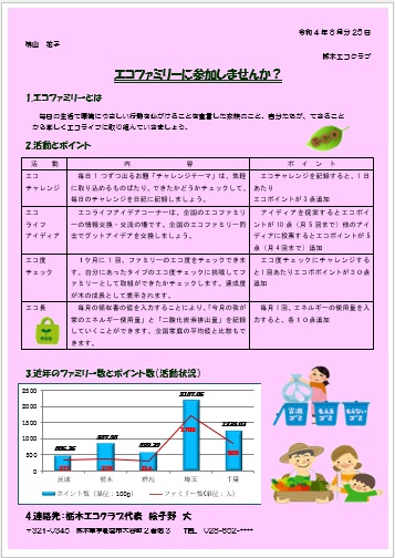 | 2022年8月26日の作品 のみちゃんの“エコファミリー” (使用ソフト:ワード) エクセルのグラフの貼り付け・表の作成・差し込み印刷等の学習 |