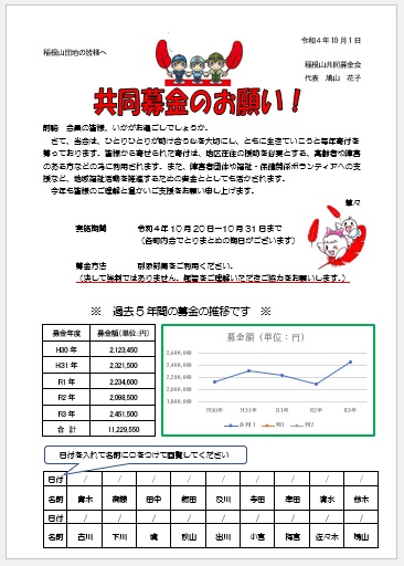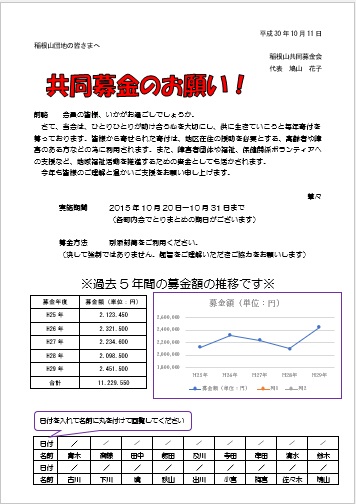 | 2022年8月24日の作品 さ〜ちゃんの“共同募金のお願い” (使用ソフト:ワード) ワードの表計算機能を使いました。 |