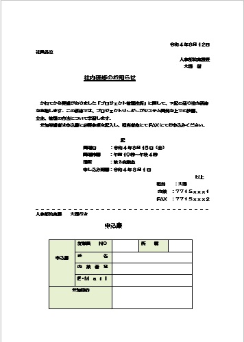 | 2022年8月26日の作品 さとちゃんの“社内研修” (使用ソフト:ワード) 表の作成・切り取り線の作成・インデントを増やす/減らす等の学習 |