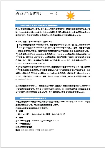| 2022年8月10日の作品 しんちゃんの“防犯ニュース-1” (使用ソフト:ワード) |