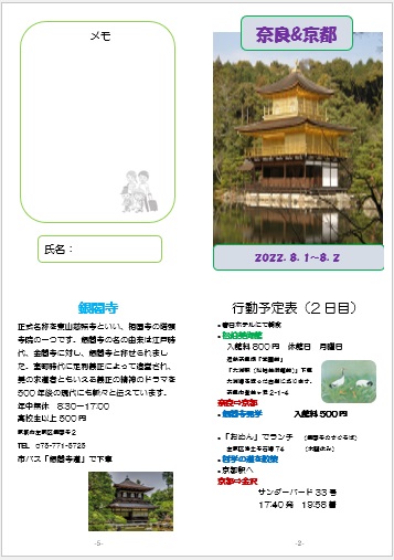 | 2022年8月4日の作品 チュー太さんの“旅のガイド小冊子-表面” (使用ソフト:ワード) メールで届きました |