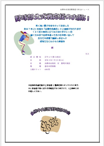| 2022年8月26日の作品 海ゆかばさんの“野球のちらし” (使用ソフト:ワード) 旧のワードアート・イラストのコピー/貼付けの学習 |